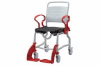 Кресло-коляска имеет 4 маленьких и 2 больших задних съемных колеса. Большие колёса позволяют пользователю передвигаться на стуле без посторонней помощи. Тормоза на каждом колесе позволяют зафиксировать кресло на месте, если это необходимо.  Подножки кресла-туалета можно снять.